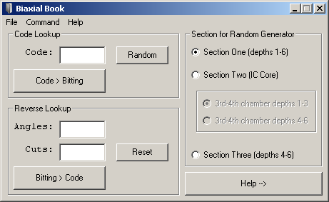 The MedecoŽ Code Book in digital form. Either input a code to convert to the bitting with angles or do a reverse lookup by inputting the angles and bitting to convert to the code. |