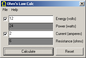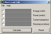 A straight forward Ohm's law calculator. Input any two values of either Energy, Power, Current, and Resistance and the calculator will output the remaining two values. |