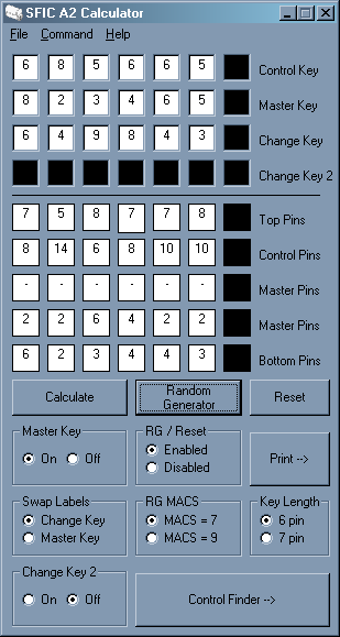 A Windows clone of A2Calc! Actually, it's the other way around as this version was developed well before the iOS version. All of the features found in A2Calc can be found with the Windows version, including Randomize and Control Finder. All systems can be saved and printed (please note there is no encryption unlike saved systems in the iOS version). Pin a single cylinder with up to two change keys and one master key. |